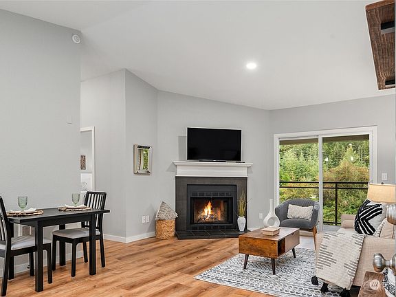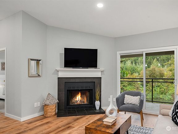 Nestled in the heart of Bothell and overlooking the serene Sammamish River, this fully renovated, top-floor home is a true retreat where tranquility abounds. The open layout offers modern living, with a fireplace in the living room creating a calming atmosphere. Outside a deck welcomes fresh air with space to take in views of the river and surrounding greenery. The kitchen is light and bright, featuring a sparkling tile backsplash, stainless appliances, and great lighting—ideal for the home chef. Located just minutes from downtown Bothell, enjoy trendy shopping, tasteful dining, and the charm of this beloved Eastside city, all within the sought-after Northshore School District. Easy access to SR-522 and I-405.