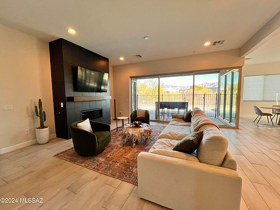 Furnished 4bdr/3ba home w/bonus room in the gated community of The Estates at Capella in Oro Valley! Spacious Greatroom w/electric fireplace, gourmet kitchen features granite counters, stainless steel appliances, gas cooktop, tiled backsplash, pendant lighting, walk-in pantry, counter seating, dining nook & French door refrigerator. Primary bedroom offers patio access to sparkling pool which may be heated at tenants expense. Primary bath w/huge walk-in shower w/bench seating & Primary bedroom/bedroom 3 offer King beds. This home is a Must see & requires a 6 mo lease. Backyard w/covered patio, sparkling pool & spa w/ mountain views! Cable/internet are incl & tenants receive a monthly credit of $200.00 applied towards remaining combined utilities. EMS Realty represents the Landlord only.