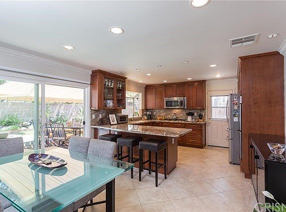 Exceptional ?Landmark? home located on an interior cul-de-sac! Beautiful curb appeal! In 2012 the home had a new Grey tile roof installed, new kitchen, new ducting, A/C unit, gorgeous tile flooring, solitube, crown moldings, paint and more! The world class kitchen features pull out pots and pans drawers, first class wood cabinetry, stunning granite, Bosch dishwasher, 5 burner stove, dual oven and a built in microwave. Gorgeous remodeled downstairs bathroom! Smooth ceilings! Recessed lighting! Dual pane windows! Custom entry doors! Separate family room! One bedroom downstairs! The backyard has a dramatic pool and spa accented with cobalt blue tile and a water feature! The yard also has an electric retractable patio cover, grass area and lush landscaping. Located in the Prime School boundaries of Beckford Charter, Nobel Charter and Granada Hills Charter High School.