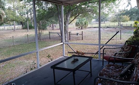 Breathtaking 2 acre property with a 3bd/2ba home! (so bring your animals, RV & toys) YOU'LL DEFINITELY WANT TO CALL THIS HOME! Freshly painted inside & out. Large master bedroom with walk-in closet, kitchen features granite counter-tops and wood cabinets. Floors are new tile and new wood laminate throughout, crown molding & window treatments. Whether you sit on the front screen porch or out back under the pergola you will feel at peace on this beautiful property. Large oak tree for some shade. There is a detached garage/workshop and horse barn with 2 stalls, electric and auto waterers. Property is fenced & cross fenced with electric. NEW Well & water system too. Acreage with the convenience.....easy access to I75 and stores within 10 min.