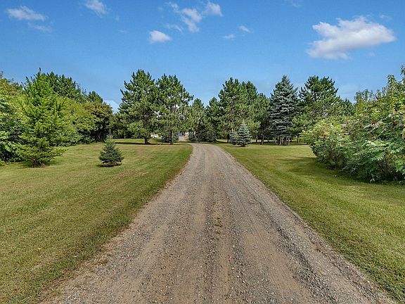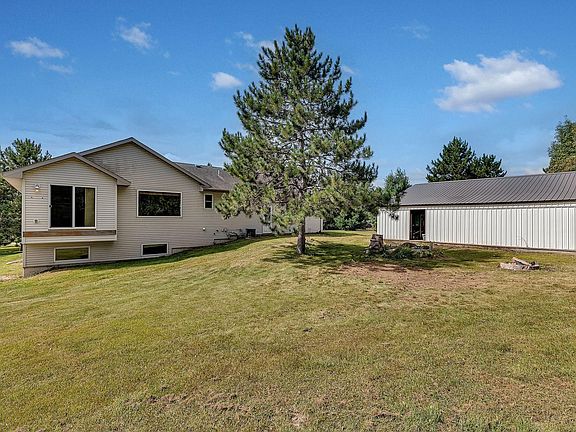 Nestled at the end of a quiet county road, this 4-bedroom, 3-bathroom walkout rambler features 2,535 sq ft of open-concept living with vaulted ceilings and large windows that fill the home with natural light. All windows have been recently replaced and come with a 10-year transferable warranty. The main floor includes a spacious primary suite with a private bath and main floor laundry. The lower-level family room provides plenty of space for relaxing or entertaining. Outside, a large private yard is surrounded by trees, and a 36x40 pole building with a 9x40 lean-to is perfect for storage or hobbies. Just minutes from Highway 169, the home combines country seclusion with easy access to local amenities.