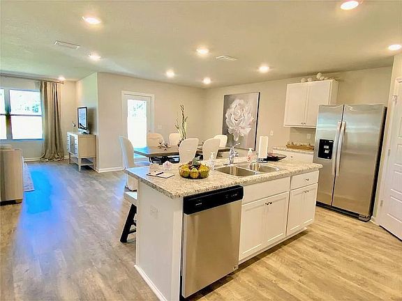 This spacious 4-bedroom, 2-bath home offers a popular open floor plan, perfect for comfortable living and entertaining. The kitchen features granite countertops, stainless steel appliances, elegant cabinetry, and a large island for extra prep and dining space. Luxury vinyl plank flooring runs through the main living areas, while plush carpet adds comfort to the bedrooms.
