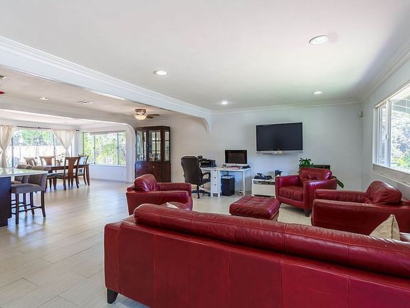 Must see this Beautiful, Exquisite 3-bed 2-bath home in Northridge! This home welcomes you with a brick driveway, large wooden electric gate and a double wooden/glass door entrance! This home has everything from LED recessed lighting, Italian porcelain and Red Oak flooring, crown moldings. Open space floor plan, where each room is separated with beautiful arch ways. Spacious living room area with ceiling fan. Gorgeous gourmet kitchen, newer 6 Burner Stove, Quartz Counter tops, self closing cabinets/drawers, Unique wooden cabinetry, High-end stainless steel appliances with a built-in stove hood. Island with built-in sink and lots of cabinet space, perfect breakfast nook can seat up to 10 people. Newer Tank less Water heater, Newer AC/Heating, double pane windows throughout This home features roomy bedrooms, ample closet space and lots of natural lighting!! An amazing newer concrete slate roof, Huge Private backyard with automatic sprinkler system all around, surrounded by trees, fruit trees, with a grassy area, as well as a section for outdoor seating/BBQ.This home is move in ready and with nothing to spare, Perfect for a first-time buyer or a growing family! The Best schools for your children, great neighborhood and conveniently located near the 118 freeway! Make this Home Yours!!!
