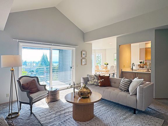 Top-floor condoWest facing covered deckGourmet kitchenSpacious primary en suiteDual walk-in closetsVaulted ceilingLake washington view