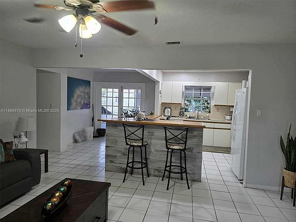 NICE SINGLE FAMILY HOME ON A CORNER LOT AND MANY FRUIT TREES WITHH A KITCHEN OPEN TO LIVING ROOM TILE FLOORS THRUOUT., SCREENED PORCH FOR OUTDOOR ENTERTAINING.