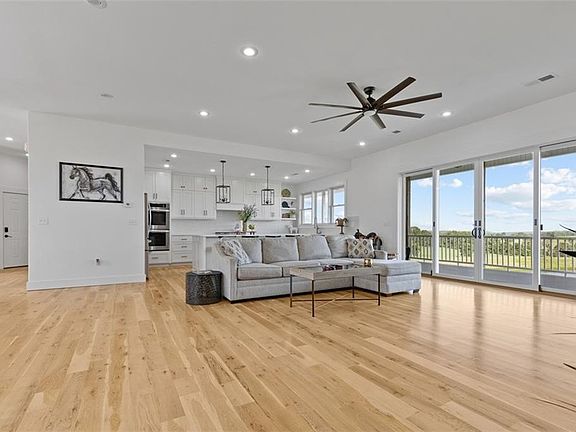 Where modern luxury meets country living—complete with stunning sunset and rolling hill views and over 4,000 sq. ft. of beautifully designed space. Custom built in 2019, this 5-bedroom, 4-bath home is packed with premium features, including white oak hardwood floors, Andersen windows, composite decking, 18-inch floor joists, a commercial-grade tankless water heater, and 3 HVAC zones for year-round comfort. The primary suite offers a private walkout to the expansive 10x50 foot back deck, heated tile floors in the ensuite bath, and an oversized walk-in closet that connects directly to the laundry room for ultimate convenience. The kitchen is nothing short of a dream—boasting a 10-foot island, custom cabinetry, quartz countertops, sleek tile backsplash and a walk-in pantry. Crafted with exceptional detail and designed for both everyday living and entertaining, this home truly has it all!!