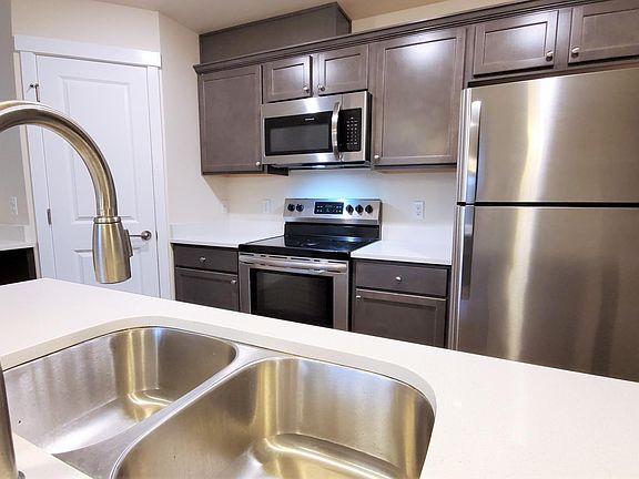 Stainless steel appliancesQuartz countertopsOpen-concept kitchensFull-size washer and dryer