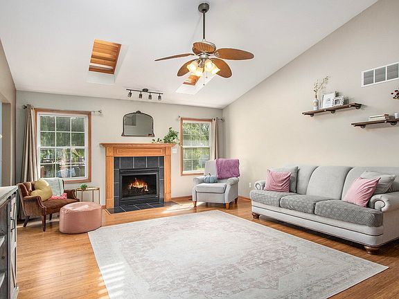 Located in the heart of St. John, this adorable and well-kept ranch with huge unfinished basement is truly a gem. Nestled right across from the Palmira golf course, this three-bedroom, two bath home is move-in ready for its new owners. Inside you will find beautiful bamboo hardwood flooring throughout most of the upstairs, ample closet space, and vaulted ceilings with skylights that let in plenty of natural light. The living room features a gas fireplace, and there is a formal dining room that is perfect for gatherings. The master bedroom includes a walk-in closet and an ensuite bath with separate shower and whirlpool tub. You also have easy access to parks, schools, and local shopping. Recent updates for peace of mind include the furnace and air conditioner were replaced about 7 years ago and the roof was replaced 4 years ago. Also, the basement has roughed in plumbing for an eventual extra bathroom. This is a wonderful opportunity to own a charming home in a prime location.