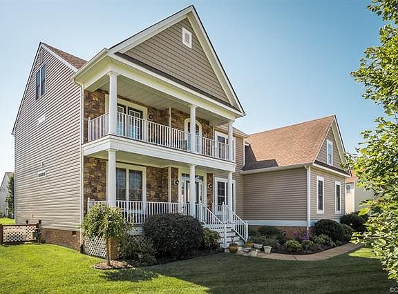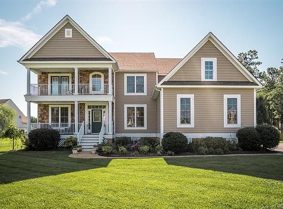 Former model home in desirable Midlothian. Stunning double porch with balcony! Double width paved drive, 3 car garage, irrigated level lot and rear deck for cookouts. Grand 2 story foyer with transom window details above formal dining room and office/formal living room. Warm hardwoods and 9ft ceilings throughout first floor and beautiful double staircases from foyer and one that lands near kitchen/family rooms. Spacious family room boasts gas fireplace and opens to kitchen, an entertainers dream! Eat-in kitchen with gas cooking, stainless appliances, island with plenty of seating and rich Cherry cabinetry with built in desk area. 1st floor bedroom with ceiling fan, large dbl closet and near the 1st floor full bath. 2nd level features a large rec/media room, bring your games/gym equipment! Spacious master suite with in wall safe, ceiling fan, huge walk in closet and HUGE Jacuzzi bath with tiled shower, tub, double sink vanities. Bedroom 3 has en-suite full bath and WIC. Bedroom 4 has access to balcony and a large closet. Bedroom 5 and a full hall bath complete 2nd flr. 3rd floor is large/unfinished and has roughed in full bath, great space! Enjoy Collington's pool and amenities!