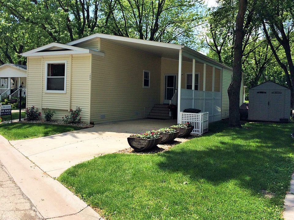 Cozy COMFY Cottage w/ MODERN features, RESORT-STYLE AMENITIES in age-restricted community (55+)! Enter inviting CHEERFUL living room w/ textured ceilings throughout, opening to a LARGE eat-in kitchen w/ lots of cabinet space + pantry. Master bdrm w/ full bath ensuite. Additional 2 BRs (or office) w/ large closets and 3/4 BA. Built-in shelf units in guest bath and hallway. Many UPGRADES and improvements! New roof-line carport with hidden door panel to shed access, security/storm doors and outside doors w/ built-in mini blinds BRIGHTENS this home. New motion-activated outside lighting at both entries, leaf-guard gutter system w/ rain barrels for collection & recycle. Light fixtures whole house - UPGRADED. NEW! New! New! All smoke detectors replaced w/ state of the art 10 yr systems. New Rheem Performance Plus water heater w/ capacity for 3-4 people. Beautiful flower gardens and charming landscaping complete this picture.