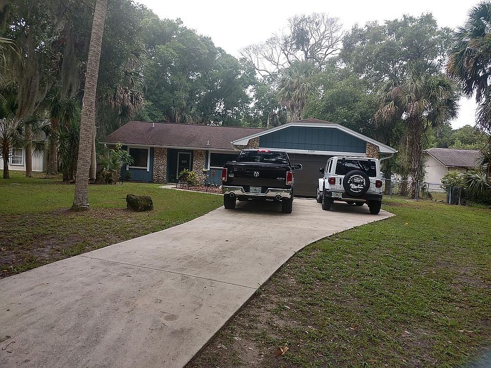 "SOLD AUGUST 31, 2021" Come to the most laid back Key's style neighborhood in Ormond! Life is easy here and if you are a boater that doesn't like homeowner's associations but want what you live around to look nice.. then you will feel like you hit the jackpot in Tomoka Estates! Very deep lot, long driveway, plenty of room for a boat on the side and a pool in the fenced in backyard. Boat ramp is just down the street. Cozy yet open floorplan with split bedrooms, inside laundry, large great room open to the completely remodeled kitchen and a coquina stone fireplace. Vaulted pecky cypress ceilings in the great room and foyer. Brand new flooring ceramic grey wood tile planks throughout with new carpet just in the guest bedrooms and newly painted outside beautiful blue and whited trim and some rooms inside. Large Screened in porch which overlooks large yard.