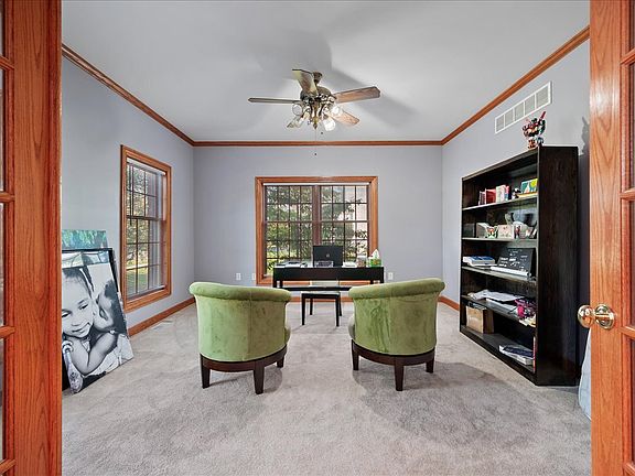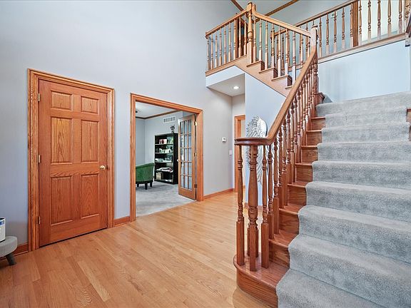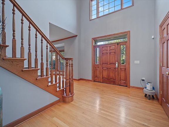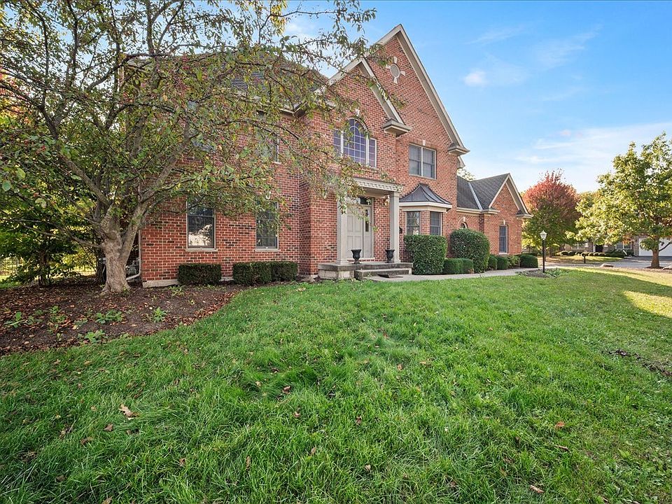 Beautiful custom-built brick Georgian home in desirable Heartland Circle! Gleaming oak hardwood floors greet you in the light filled 2-story foyer and flow through to the formal dining room, kitchen, and eating area. Main floor Living Room/Den with French doors, crown molding and closet. The formal dining room has a big bay window, crown molding and adjacent Butler's pantry. You will love the oversized kitchen with custom cabinetry that includes a buffet area with glass front cabinets, island with a 'prep' sink, solid surface countertops, SS appliances, crown molding, recessed lighting and big eating space with an atrium door to the patio and fenced yard. The cozy family room has a floor-to-ceiling brick fireplace, box bay window, crown molding, and recessed lighting. Main floor laundry/mud room with access door to garage and yard. Main bedroom suite offers a tray ceiling, walk-in closet with built-in organizer and luxury bath with dual sink vanity with make-up area, whirlpool tub, and separate shower. Three secondary bedrooms all with walk-in closets. Full hall bath with dual sink vanity and private shower/tub & commode. Full basement with abundant storage. Wrought iron fenced back yard with patio. 3 car side load heated/cooled garage. Convenient location is only a block from neighborhood park and just a few more to the Fox River! Rte 47 and 34 are close by too!