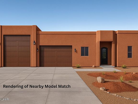 Here's your chance to own a brand new beautifully designed 2300 sqft house 2000+ sqft garage on 2.48 acres of horse property. Freshly graded 20,000 sqft pad just completed - three driveways including a wrap-around can be installed. Zoned residential recreational, surrounded by nature preserve, this property boasts a rare and stunning 360 degree view with city lights, clouds, mountains, sunrise, sunset and a peek a boo lake view. You can access the water from the nearby lagoon or cliffs, both within walking. The Shops at Lake Havasu, State Park with Boat Launch, Resort, private airport & schools are within 10 minutes. Enjoy the quiet or play on your own property just outside of our growing city limits and in an area that is being redeveloped, which means future appreciation potential. House plans are actual; however, reversed. 10-foot ceilings throughout, great back yard area with at least one acre to spare. An infinity pool could be designed and installed. Renderings are approximate, options are available if you buy before we build. No HOA expenses. Water well means you can have unlimited water, no paying the water company, real grass, landscaping, land your helicopter here.