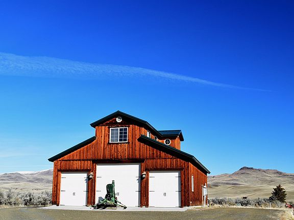 The Rock Creek Ranch North is in a picturesque setting: private & quiet, farmable crop land, sub-irrigated meadows, live creek with an incredible, 1728 sq. ft., two-story “barn-dominium” with 3,000 lb. electric lift. Rock Creek Ranch has gorgeous vistas from its 15.6± deeded acres with one (1) residential permit for new home or the "barn". The custom-built, Cedar board & batten barn is very well built with five (5) roll-up doors on three sides, providing easy access. On the ground level it has two finished rooms. One is complete with all water facilities, including toilet, shower and water tanks supplied by its own well & septic system. The 2nd room (perhaps a tack room or kitchen area) has electricity and finished walls. The 12 ft roll-ups and concrete floor are ideal for travel trailers. The electric lift provides access to the spacious upper floor (12’x48’) with windows overlooking the valley around. It has its own well, septic system, 500-gal propane, 500-gal diesel tank, RV hook-ups & Kohler generator.