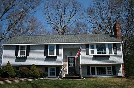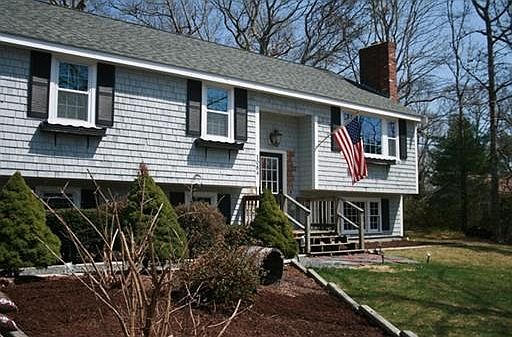 Great Manomet location close to beaches schools and shops. Large lot with house set way off the road, still allows for a big back yard with large deck and a storage shed. House has had many updates including kitchen, bath, hardwood floors, roof, and water heater. Open floor plan includes eat in kitchen and a living room with a pellet stove. Lower level has a huge family room. There is a fireplace in the unfinished side of the lower level which could easily be finished. House has in-law potential with walk out lower level.