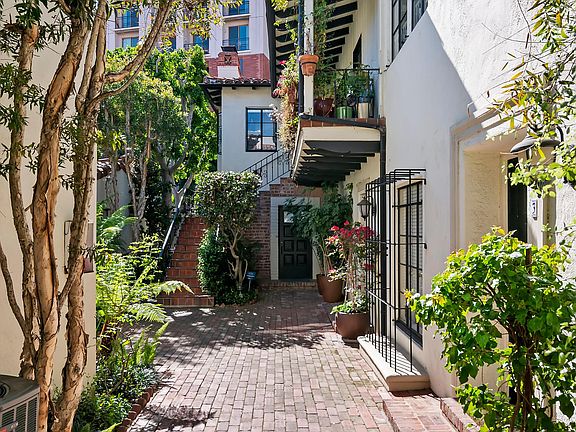 Rarely on market . Minutes to UCLA and Westwood Village, Century City. Old-world charm with private garden setting in the heart of Westwood Village. Contemporary updated kitchen and bathrooms. Designated as a historical monument this two-story town home blends vintage details with modern convenience. Hardwood floors throughout, lovely crown molding, sconces, a large central fireplace, bay window, tile accents, iron work and more create a unique environment. Modern conveniences include an updated kitchen with marble counters and a separate dining room, stainless appliances, a /dryer, AC and wiring for security. Two bedrooms are featured upstairs with a large balcony. The upstairs marble bath has a separate tub and shower with a rainfall shower head. Charm and convenience .Available Unfurnished. tenant pays gas electric,cable ,internet.1 parking space. no smoking
