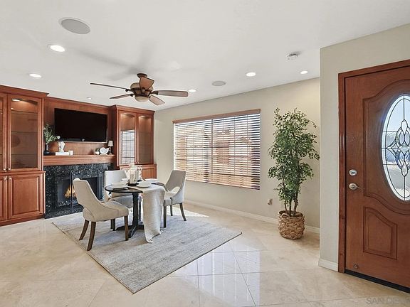 Custom Home w/Pool on Quiet Cul-de-Sac! Welcome to this exceptional home w/great walkability to Mira Mesa Mall, parks & schools. Located in pride of ownership neighborhood, this home has everything - space, comfort, and loads of upgrades in & out! The chef’s kitchen with cherrywood cabinets and granite counters is a showstopper with high-end appliances. There are cabinets galore including large pantry with pull-out drawers. Step outside to your backyard paradise with a sparkling pool, child/pet safety fence (removable), covered patio, palapa with firepit table - perfect for hosting friends & family. Additional features are beautiful polished travertine flooring & recessed lighting throughout. Downstairs you’ll find 3 bedrooms and 2 remodeled bathrooms, plus a spacious family room great for gatherings. Upstairs is your own private 400 sq ft primary retreat, complete with a fireplace, huge walk-in closet, spa tub, separate shower, and even a private balcony. There’s also a fifth room perfect as a home office, workout room or whatever you need. Additional highlights include owned solar panels (the seller actually got a credit at true up date), whole-house water softener, newer oversized water heater, and central A/C to keep you cool year-round. This home truly has it all — space, style, and a great location close to everything Mira Mesa has to offer!