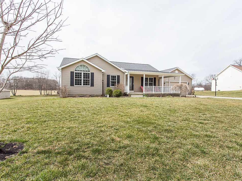 Well maintained and much loved 3 bedroom, 3 bath ranch home on dead end road in Hanover-Horton Schools. Kitchen features hickory cabinets, glass backsplash, and penisula, main floor laundry, open floor plan, and a fully finished walk-out basement with wet bar and granite countertops, an office, work out room, full bath and storage room under the front porch. Beautiful landscaping features flowering perennials, decor pond, zip line, rope swing, treehouse, and a boulder retaining wall. Extra deep garage offers extra storage space and cabinets. This is a well-built and meticulously maintained home in a great location.