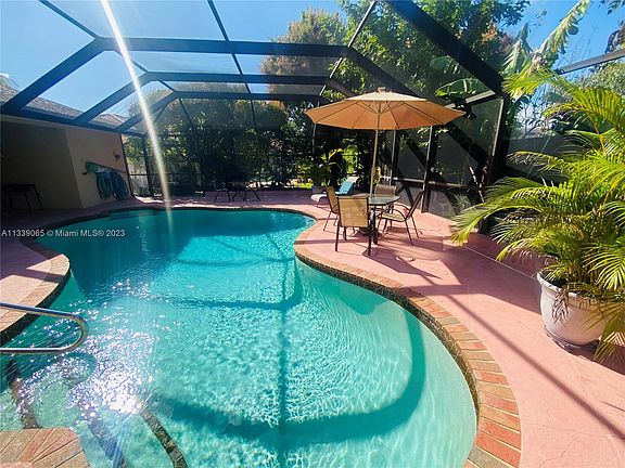 Wonderful Single Family ready for a New Owner! This property consists of 4 bedrooms, 3 full baths in a split floor plan, 2 extra-large master suites spacious living, formal separate dining, great family room, large updated kitchen, with SS appliances for living space 2,948sqft on a 9,900 Lot. The pool is fully screened surrounded by a yard fruit-trees. A camera system throughout property, New A/C units, accordion shutters throughout. So many extras, there are too many to mention. Don't miss this amazing opportunity!