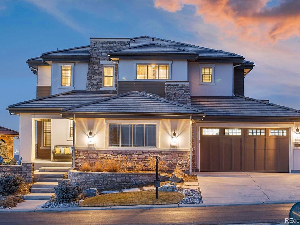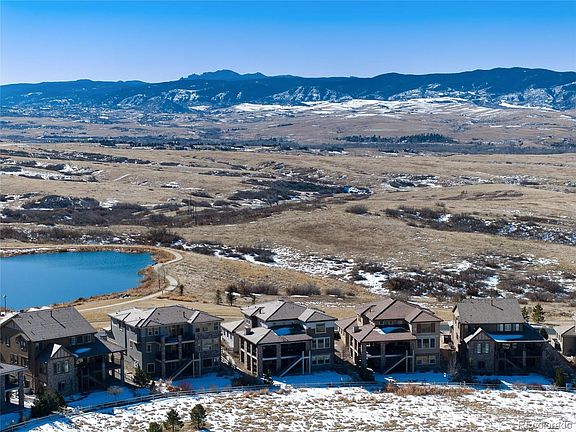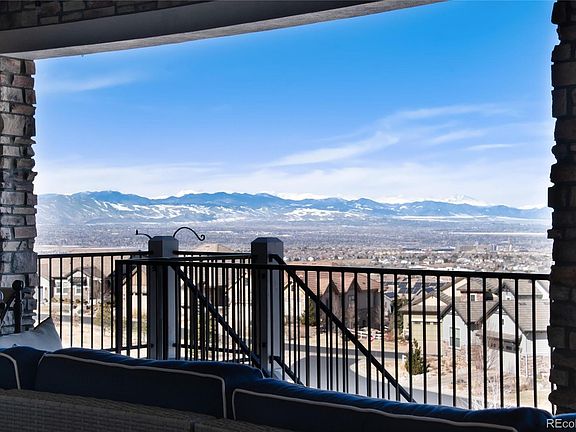 Perched on a prime location within the coveted BackCountry neighborhood of Highlands Ranch, this remarkable residence features breathtaking vistas & upscale living.BackCountry is renowned for its resort-style ambiance & expansive open spaces, this home offers unparalleled views of the serene pond, majestic mountains, & the iconic Denver skyline. Begin your day with the tranquility of sunrise over the pond area, indulging in a cup of coffee on the patio. Come evening, savor cocktails against the backdrop of a picturesque sunset on the wraparound deck, where the mountains provide a stunning silhouette & city lights twinkle in the distance. Inside, the main floor welcomes you with a spacious family room featuring soaring 20' ceilings & abundant natural light pouring in through strategically placed windows.Cozy up by the fireplace during cooler weather, creating an inviting atmosphere for gatherings with friends & family. The well-appointed kitchen includes stainless steel appliances, granite countertops, a butler’s pantry, & an expansive center island, perfect for culinary endeavors & entertaining alike. A conveniently located den with French doors & a private bath offer flexibility and comfort on this level. Retreat to the primary suite, where large windows frame captivating views, & a fireplace sets the mood for relaxation. Pamper yourself in the spa-like bath with dual vanities & a luxurious soaking tub, while dual walk-in closets provide ample storage & organization. Upstairs, three ensuite bedrooms offer privacy and comfort, while a versatile library space can easily be transformed into a 4th bedroom or used as is. Entertain with ease in the finished walkout basement, complete with a full wet bar & a 4th bedroom for overnight guests. Outside, the expansive wraparound deck with a fireplace offers an inviting space to enjoy the fresh mountain air.