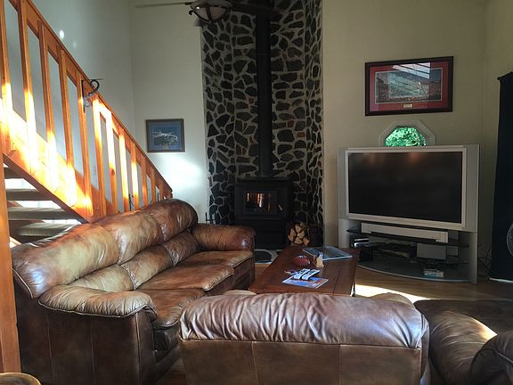 Gated Lodge style home with spectacular mountain views! Spacious open floor plan, vaulted ceilings, hardwood floors, and solid pine doors/trim throughout. Large master bedroom with master bath, jacuzzi tub, and walk in closet on 2nd floor. Great room with Blaze King woodstove, access to screened in porch and large wrap-around wood deck. Dining area with views of Cope, Erskine, and Center Mountains. Kitchen with island and cooktop. Three bedrooms and bath on main floor, laundry room with access to deck and private fenced yard. Arctic entry with custom built-in cubby storage and Brazilian slate floor. Movie room with DirectTV. Large playroom/office/bedroom with balcony. Two car garage with radiant heat, workbench, fish freezer, and automatic garage door. House heated by system 2000 with additional large woodstove. Home also includes large (30X36sqft) building adjacent to garage. Six minutes to Coast Guard Base, 15mins to town. Located in Bell's Flats between Sargent Creek and Russian River.