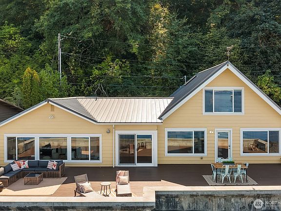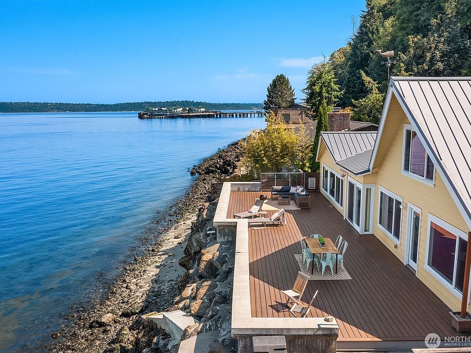 Nestled along the shores of Puget Sound on Vashon Island - just a 20-minute ferry ride from downtown Seattle - this beautiful waterfront home offers the ideal blend of tranquility & splendor. Unobstructed views stretch across the Sound from the Olympics to the Cascade Range. Mt Baker rests in the distance, overlooking Seattle. Renovated in 2017 with a brilliant open-concept design. A chef’s kitchen boasts custom Mexican tile accents, a generous island, & top-tier finishes. The private primary serves as a serene retreat with a spa-inspired bathroom. Floor-to-ceiling windows, fir ceilings, & exposed beams fill the home with light & airiness. Step out onto the expansive deck to relax & take it all in—your perfect waterfront sanctuary awaits.