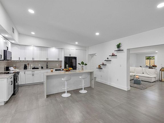 Welcome to a modern stunner in West Miami Shores. This one-of-a-kind 2,901 sq ft home with 5 Beds/4 Baths has all new everything from top to bottom. Custom kitchen with 10ft high ceiling, quartz countertops, an oversized island perfect for culinary creations & new stainless-steel appliances. Each of the four bathrooms are unique in their own way, bedroom closets have built-in wood shelving. The maintenance free privately fenced backyard has a led illuminated, ceiling fan cooled cabaña. New porcelain floors, new roof, impact windows and doors, new dual zone a/c, & all new electrical from beginning to end. Located in the growing West Miami Shores neighborhood, your new home provides the perfect blend of suburban tranquility & urban convenience.