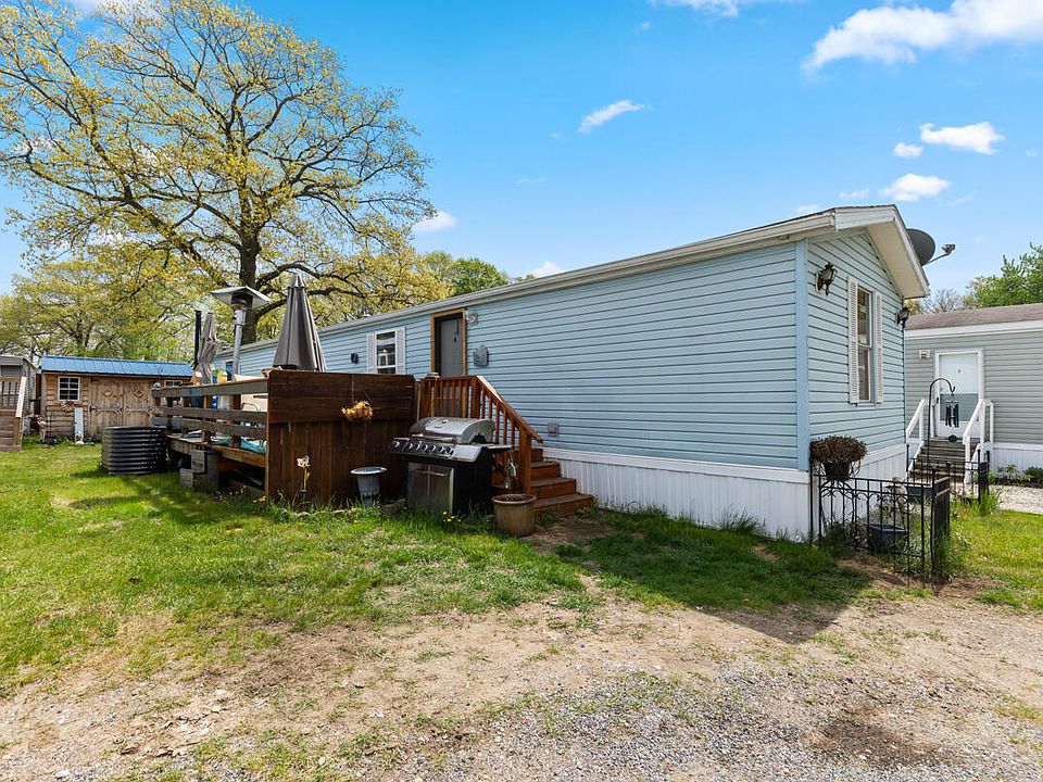 Located at 10845 Percy Lane in Mecosta, Michigan, this 1991 mobile home offers a rare opportunity for affordable lake access living. Priced under $60,000, it provides residents with private access to Round Lake, a desirable all-sports lake known for boating, fishing, and swimming. As part of the Holiday Terrace Mobile Home Park, residents can apply for a dock, enjoy the park-owned boat launch, and utilize the swimming beach, enhancing the lakeside experience. The home has undergone several updates, including new light fixtures, some updated windows, new flooring, newer appliances, and a walk-in shower in the master bathroom. These improvements contribute to a comfortable and modern living space. Additionally, the property features a shed for extra storage and a 10x20 deck, providing ample outdoor space for relaxation and entertainment.