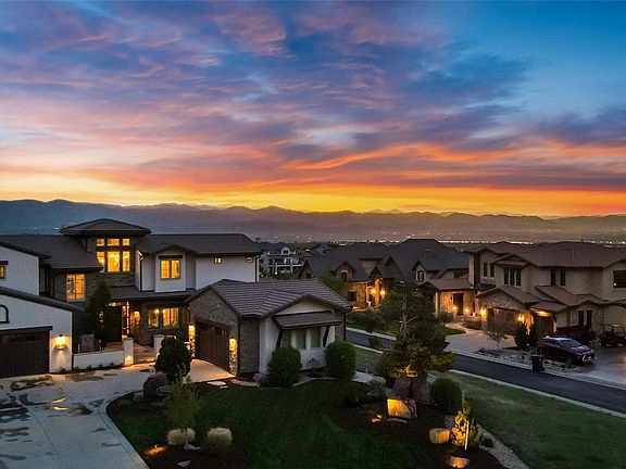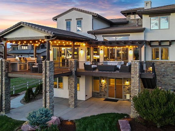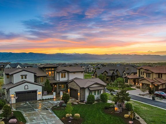 An absolutely GORGEOUS custom home that truly captures the essence of the rugged West and combines it with Colorado luxury. Located on an extremely private lot, this home exudes quality. Inside, the entertaining spaces include multiple living and dining areas coupled with a gourmet kitchen with breakfast area leading to a large covered deck with built-in barbecue, as well as an open great room featuring a marble fireplace and vaulted ceilings with handcrafted beams. Floor-to-ceiling, sun-soaked windows with  spectacular mountain views along with the spacious interiors provide unrivaled warmth and light. The westerly views are also appreciated from generous outdoor spaces, including a lower patio with fire pit outside the walk-out level. Accommodation takes in five bedroom en suites including a main floor guest room plus a gorgeous main floor study. The main level is completed by a laundry room, mud room, two powder rooms, plus a dog wash area in one of the two 2-car garages. Upstairs you find three bedroom en suites, including a luxurious master suite with attractive 5-piece bath and large walk-in closet. Loft area and upper laundry room are also found on the second floor. Relax and unwind in the spacious walk-out level, comprised of rec room, media room, exercise room, storage/mechanical rooms plus a fifth bedroom en suite with three-quarter bath. Elevated and centrally located within the gated Back Country neighborhood, where amenities abound including numerous parks and extensive trails, plus access to four nearby rec centers. This impressive property is fully equipped for exceptional indoor/outdoor living at its finest.  You do not want to miss out on the opportunity to tour this incredible home as it will impress the pickiest of buyers!