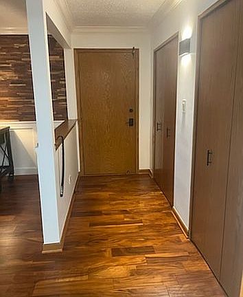 Wood burning fireplaceHeated indoor parkingCrown moldingNewly renovated kitchenFrosted glass doorsFire sprinkler systemStainless steel appliances