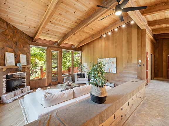 Affordable country living for remote access employment while only a short commute away from the heart of Silicon Valley! Amidst nature's splendor, this open-plan home evokes awe with its redwood beams and panoramic windows, offering a treehouse view. Designed for entertaining, its kitchen seamlessly flows into the living and dining areas. Complementing the main home is a guest house, thoughtfully designed with its kitchen, living space, bedroom, and bathroom. Indulgent comforts abound: imagine waking up to the gentle warmth of heated bathroom floors or sinking into bed after a rejuvenating soak in an adjacent hot tub(hookups available). The property boasts bountiful yields of fresh vegetables, fruits, and eggs. Kickstart your day with refreshing laps in the 45 ft pool. Evenings promise memorable poolside parties and BBQs savored under the grape arbor on the deck. Head to Ben Lomond for restaurants, boutique shopping, and community events, or follow Hwy 9 into Santa Cruz or Saratoga.