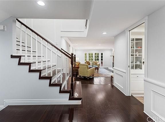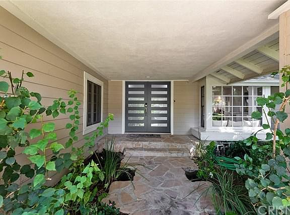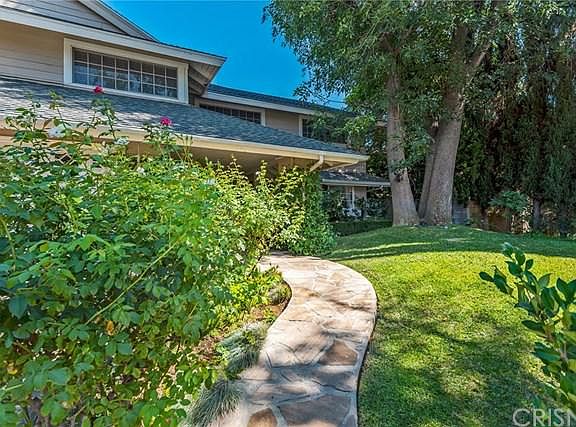 One of the crown jewels of this highly desired Porter Ranch neighborhood on a quiet street* Walk up on your stone inlaid walkway to new modern double door entry* Wood floors & gleaming new paint throughout most of the first level* Crown molding, fireplace with big wood mantle, recessed lights & French doors adorn the grand living room* Crown molding, wainscoting, another set of French door & chandelier grace the dining room* Light, bright & white island kitchen features new Wolf 5 burner stainless range, stainless dishwasher, built-in stainless Viking refrigerator/freezer, large breakfast area with butler's pantry, garden window and bay window with view of the front yard* Updated downstairs bathroom* Gigantic family room with chandelier, brick fireplace, classy full wet bar & two sets of sliding French doors to backyard * Home office/den in former 3rd car garage is perfect for home office* Upstairs are 4 big bedrooms including a "Beverly Hills" main bedroom suite - wood floors, fireplace #3, crown molding, recessed, lights, walk-in dressing suite/closet, private balcony, and a completely remodeled bathroom with ample multi-head shower, seamless glass enclosure, dual sinks with exotic counter & back splash, free standing soaking tub, and stunning tile floors* Full bathroom #3 upstairs* Backyard has built-in BBQ center, child-safe pool & spa with peaceful water feature* Great schools including Granada Hills Charter HS* Great new shopping and restaurants at the Vineyards*