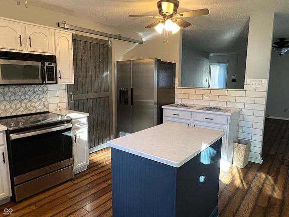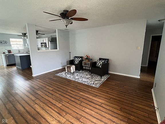 Recently renovated ranch home with new carpet, updated baths, manufactured hardwoods and great curb appeal yells out "Welcome Home"! Large great room will be the center of activity! Laundry room is separate with pantry storage and its own barn-type door! Appliances are updated and there is even a center island. Lots of cabinets and storage and you'll love the countertops! Backyard is cozy and there is a covered porch! Move right in and enjoy! There is nothing to do here! Small town atmosphere and Franklin Township Schools!