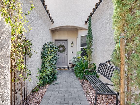 LOCATION, LOCATION, LOCATION! Nestled in the heart of Summerlin, this charming single story offers a blend of comfort & style with 3 spacious bds, 2 full bths + a den perfect for an office/man cave. The formal dining rm creates an elegant setting for meals & gatherings. The upgraded kitchen features Corian countertops & stainless steel appliances. The home has bamboo window coverings that provide soft, diffused light while still maintaining privacy. It is exceptionally clean, showcasing pride of ownership. Outside, the backyd is an oasis with mature landscaping that provides ample shade and a fruit tree that adds a touch of nature & beauty. The 2 car garage offers convenience & additional storage. The home is well-equipped with a new air conditioner for year-round comfort & a water filtration system for peace of mind. High-end fixtures throughout the property elevate the home's aesthetic, ensuring it feels both luxurious & inviting. This home is truly a gem in a much sought-after area!