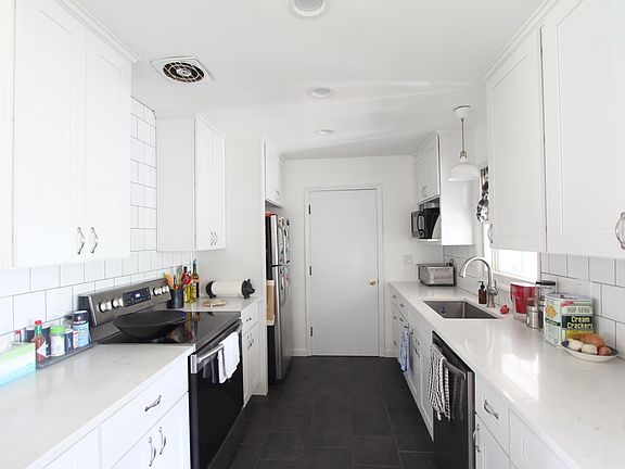 Beautiful updated mid-century ranch with original hardwood floors throughout. Brand new air conditioning, tiled bathroom, bright new kitchen with stainless steel appliances, huge sink, and custom soft-close cabinetry. Charming living room with fireplace perfect for cozy nights. Large laundry (with newer Samsung washer and dryer)/mud room off the kitchen which leads to 2-car garage. Includes a sun porch and bonus enclosed deck filled with gorgeous natural light, fully fenced large back yard with a fire pit perfect for summer parties. Quiet, sweet neighborhood perfect for going on walks to nearby Dickinson Park. Fiber internet ready - pick one of the 3 bedrooms to turn into your ideal work from home set-up. SCREENING FEE: $35 for each adult applicant SECURITY DEPOSIT: $2570 dependent upon screening PET DEPOSIT: $500/pet UTILITIES: Paid by tenant, except garbage. RENTERS INSURANCE: A $100,000 liability renter insurance policy is required PARKING: In attached garage Per Portland rental regulations, application period will open Friday, Oct 31 at 5 pm. Any applications received prior to that will be subject to an 8-hour hold. Non-Smoking house and property, pet friendly - any size, any breed with application and $500 deposit. Laundry room with washer/dryer included.