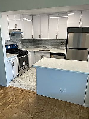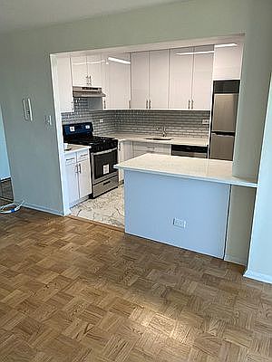 Beautiful newly renovated, 2 Bedroom, 1 Bath, Jr 4, high-rise, central heat/air-conditioning, 24 hour doorman, bright open sunny city view, half block to express subway, 1 1/2 blocks to LIRR, pet friendly, parking available, gym available in building.