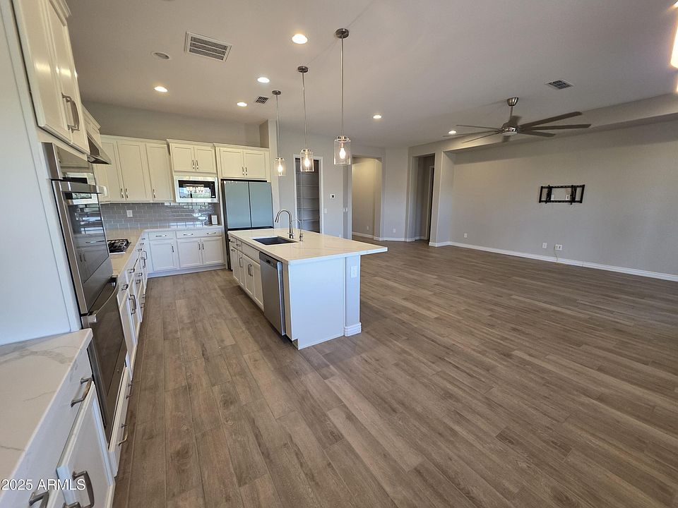 The stunning Hillary offers 3 bedrooms, 2.5 baths, study, 3 car garage, and 2,290 square feet of living space - all on one single level. The heart of this home is the open concept layout with an expansive gathering room, island kitchen, and dining area. Sliding glass doors lead out to the extended covered back patio and backyard. The two secondary bedrooms with a Jack-and-Jill bath and study are near the front entry. The owner's suite is located at the back of the home for privacy and features a huge walk-in closet and luxurious bath. Upgrades include two tone paint, quartz countertops, and maple cabinets. Structural options added include: gourmet kitchen, super shower at owner's bath, garage service door, doors at study, and extended patio.