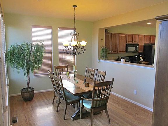 Super convenient location only 2 blocks to award-winning Rock Canyon High and Rocky Heights middle schools. You'll save hours every day by not having to drive your kids to school and sit in the drop-off/pick-up lane. This spacious 3 bedroom, 2 1/2 bath, two-story home is approximately 2500 square feet and features hardwood floors throughout the main level. Multi-function kitchen with built in desk, center island, dinette area and upgraded cabinets with pull out shelves and large pantry. Semi-formal dining area is ideally positioned for entertaining and family gatherings. Living room with recessed entertainment nook, gas fireplace and vaulted ceilings. Upstairs you will find a huge master suite complete with two "his and hers" walk-in closets, a 5-piece spa bathroom and stunning views of the foothills to the west. Two additional bedrooms, full bath and bonus space is also found on the second floor. The bonus loft space can be used as a living room, play room, craft area, home office, etc. The unfinished basement with 9 foot ceilings is ideal for a fitness room, workshop or storage. Dog friendly home with fenced in yard with easy access to neighborhood trails and a short jaunt to the recreation center. Fenced yard with bbq patio. Available March 1.