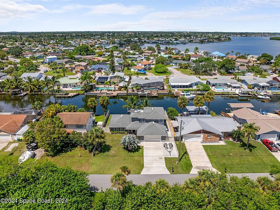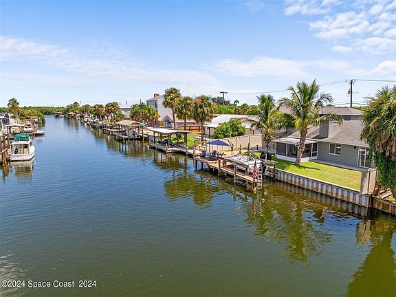 Welcome to this beautifully remodeled saltwater canal home boasting a range of impressive features. Don't miss out on this spacious waterfront gem. Set sail from your private boat lift and explore the canal leading to Sykes Creek, the Barge Canal, and beyond to the Intracoastal Waterway or the Banana River and the Atlantic Ocean. In this tropical oasis of a backyard, you'll find a permitted dock and 8K boat lift equipped with 30A dock power, large sitting area, and a kayak lift that will convey with the sale. Plenty of rom for your future pool! Pool plans were drawn up by reputable pool builder and on file. Surrounding the property you have permitted fences, and an advanced irrigation system to ensure your lush and mature landscaping package stays healthy. Additionally, hurricane panels for all windows and new impact-resistant garage doors are installed. 30A RV power located on the side of garage. Welcome to this beautifully remodeled saltwater canal home boasting a range of impressive features. Don't miss out on this spacious waterfront gem. Set sail from your private boat lift and explore the canal leading to Sykes Creek, the Barge Canal, and beyond to the Intracoastal Waterway or the Banana River and the Atlantic Ocean. In this tropical oasis of a backyard, you'll find a permitted dock and 8K boat lift equipped with 30A dock power, large sitting area, and a kayak lift that will convey with the sale. Plenty of rom for your future pool! Pool plans were drawn up by reputable pool builder and on file. Surrounding the property you have permitted fences, and an advanced irrigation system to ensure your lush and mature landscaping package stays healthy. Additionally, hurricane panels for all windows and new impact-resistant garage doors are installed. 30A RV power located on the side of garage. Continuing inside you'll immediately notice updated lighting throughout, upgraded hot water heater, fresh interior and exterior paint. For the chef in the family, a well equipped kitchen with sleek stainless steel appliances, solid surface counters and updated cabinetry hardware. The dining room in this family oriented home boasts serene views of the water and backyard while enjoying meals. For relaxation or entertaining, enjoy the inviting fireplace, screen porch with water views, or the formal living and dining rooms.The entire second floor is dedicated to a stunning master suite, complete with a private deck overlooking the water. Indulge in the master bath's elegant standalone tub and separate walk-in shower. The loft-style office offers a perfect workspace with inspiring water views. Soak in jaw dropping views of the SpaceX rocket launches or watch the manatee and dolphin play right from your private dock! Guests will appreciate their own water view and private bath in the guest bedroom. Act quicklythis won't be around for long. Schedule your showing and submit your offer today! One or more of these photos have been virtually staged.