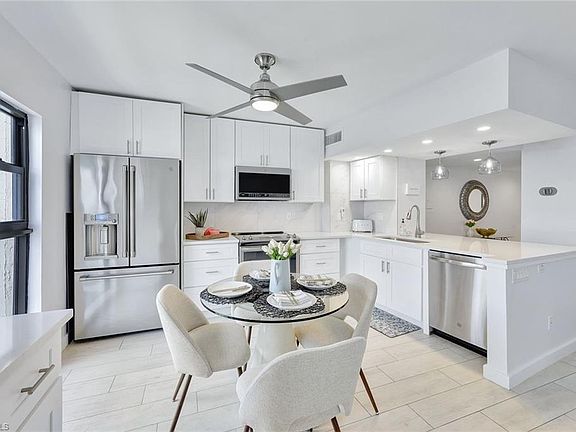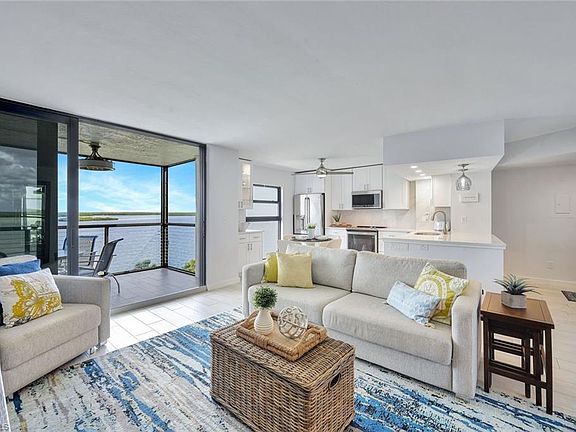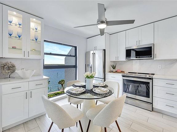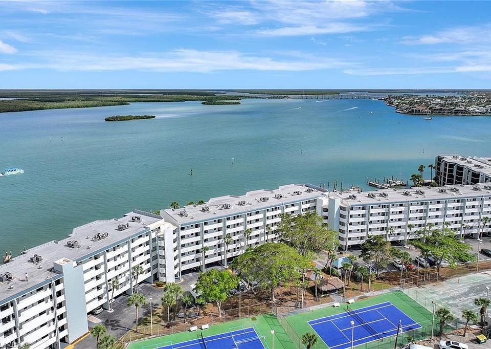 Welcome to your dream waterfront retreat on stunning Marco Island! This fully remodeled top floor one-bedroom, one-bath unit offers the perfect blend of modern luxury and serene coastal living. Step into an open-concept space adorned with contemporary finishes, elegant flooring, and abundant natural light. The spacious living area flows seamlessly into a private balcony where you can savor breathtaking water views and enjoy morning sunrises or evening breezes. The sleek, updated kitchen features premium stainless-steel appliances, quartz countertops, and custom cabinetry, making cooking and entertaining a pleasure. The stylish bathroom boasts high-end fixtures and a spa-like ambiance, while the generously sized bedroom provides a cozy escape with ample closet space. Outside, indulge in the convenience of exclusive boat dock access—perfect for boaters and water enthusiasts. Situated in a prime Marco Island location, you’ll be just moments away from world-class dining, shopping, and pristine white-sand beaches. This exceptional unit is more than a home; it’s a lifestyle. Don’t miss this opportunity to experience waterfront living at its finest! ALL Utilities are covered by condo fees and nightly rentals are allowed!