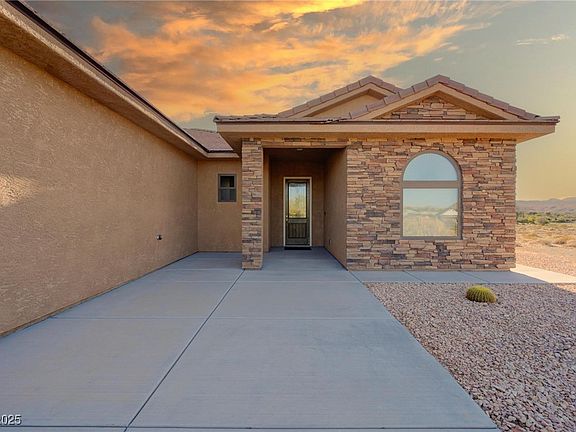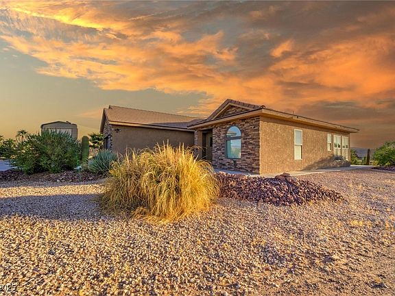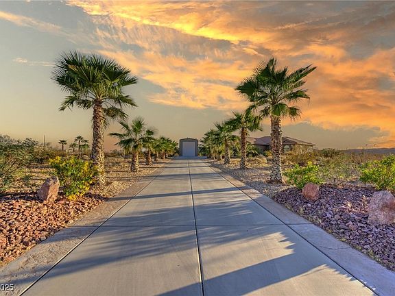 Welcome to this beautiful custom home that is tastefully situated on 4.3 ACRES and provides ample privacy with extraordinary Mountain, Valley and Sunset Views. The home features 10' ft. ceilings, E3 Anderson windows, 2x6 construction, 50 year+ cement tile roof, seamless Italian porcelain tile throughout, professional-grade Monogram stainless steel built-in appliances, soft-closing maple cabinets, large kitchen island with granite countertops. There is an extra room off the kitchen that can be used for an office or butler's pantry. Whole house water conditioner with RO under the sink. Attached oversized 3-CAR GARAGE plus a separate meticulously maintained RV GARAGE with full hookups. 120-gallon buried propane tank. Professionally landscaped with Saguaros, Palms, Pistachio and Fig Trees combined with the natural desert offers unlimited possibilities. Conveniently located in close proximity to Schools, The Clark County Fairgrounds and The Logandale Trails with unlimited equestrian trails.