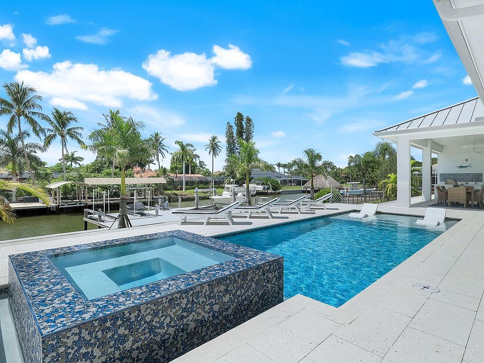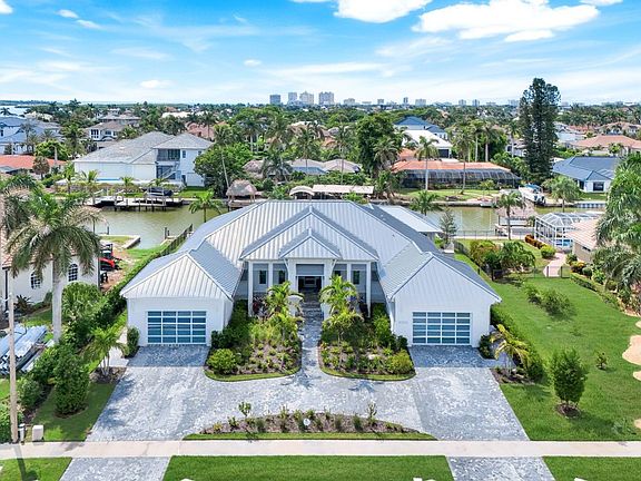 Completed OCT 1, 2024 by renowned Coastal Build, this recently built custom Caxambas waterfront residence blends modern coastal sophistication with timeless elegance. Set at 12' elevation on a 125' waterfront site just four homes from Caxambas Pass, the property offers immediate Gulf access with waterfront views. Ideal for yachting or boating enthusiasts, the home is designed to capture the Florida lifestyle with sunlight pouring through walls of 10' impact sliders effortlessly framing the water. The home opens with a broad front porch, a timeless space for rocking chairs and quiet moments of elegance. Inside, the walls are finished in sun-washed, neutral tones that flow seamlessly from room to room. Refined finishes include wide-plank tile flooring, custom designer lighting, and shiplap wall accents, with tray ceilings with wood beams that flow from the open living spaces through to the lanai. The chef's kitchen features a custom gorgeous tile backsplash, Wolf 6-burner gas range with griddle, pot filler, ceiling-height cabinetry, and a full butler pantry nearby with coffee bar for seamless entertaining prep. The spa-like primary suite features an expansive shower with 2 shower heads and bench, with desinger extra large plank tile, a freestanding tub, twin vanities, plus cosmetic station, dual walk-in closets and a private patio with waterfront views for the owner's retreat. Outdoor living is extraordinary with covered lanai's finished in beadboard inlay, natural stone tile flooring, automatic screens, a full summer kitchen, and a resort pool with sun shelf and an integrated zero edge waterfall spa. An expansive 2367sf of outdoor elegance includes an outdoor shower and 1/2 pool bath. Enjoy spectacular sunsets and evenings around the cozy dedicated firepit overlooking the water. A boat lift, jet ski lifts, and an tremendous dock system make boating a dream. Hurricane-rated windows, doors, automatic sun screens (see out, not in), a whole-house 24k gas generator, and an aluminum roof rated up to 225mph provide peace of mind. Offered furnished in a refined coastal-chic style, this residence captures the pinnacle of Florida waterfront living—where sun-drenched days, yachting adventures, and effortless luxury come together for discerning buyers who expect nothing less than the best.