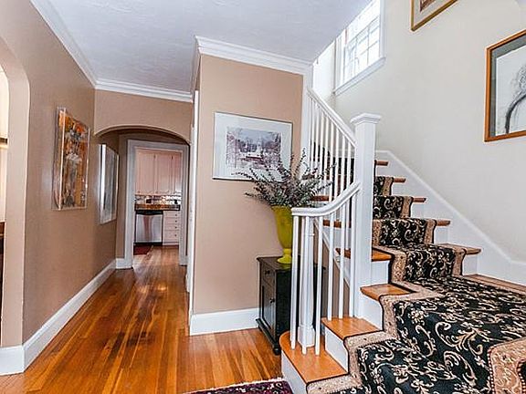 Finished lower level ideal for office, aupair, guest area separate entrance. One car garage can be opened up again if needed. walk out to back yard and private patio. This home is walking distance to T bus shops restaurants. Beautiful lush garden in front low exterior maintenance. Completely fenced in for children pets people. Ready to move right in. Any offers will be presented By Monday June 19th