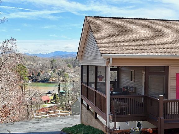 Enjoy BREATHTAKING YEAR ROUND LAKE CHATUGE and MOUNTAIN VIEWS from this Beautifully Designed 3 bedroom, 3 bath home, offering everything you need on the main level. The open living area flows seamlessly into a chef's dream kitchen, featuring stainless steel appliances and custom maple cabinets perfect for entertaining. Cozy up by the gas log fireplace on each level, or step outside to take in the views from the wraparound porch and screened porch. The fully finished lower level is an entertainer's delight, a home within a home! Complete with a second full kitchen, 2 bedroom's, oversized full bath, and plenty of space for guests and SO MUCH MORE! MOST FURNISHINGS ARE INCLUDED, making this a move-in-ready retreat. Don't miss this rare opportunity to own a piece of paradise with unmatched lake and mountain views! Conveniently located minutes from Hayesville & Hiawassee.