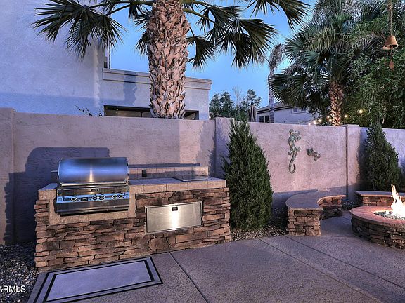 Discover single story living at its finest. This 4 bedroom, 3 bath home, w/ formal dining & a separate office/den, 3 car garage & a resort like back yard with pool, BI gas BBQ grill & firepit and putting green can be yours. Remodeled with the finest finishes & maintenance free materials. Every attention to detail was made by the present owners. The open floor plan offers newer tile flooring, carpeting, newer HVACs, roof, window glass replacement, instant tankless hot water, water softener, sunscreens, remodeled Chef's kitchen, quartz counter tops, stainless appliances, pool pump, cartridge pool filter, garage EV plug, interior & exterior paint, front & additional security doors, backyard turf, extended pergola, cement sidewalk, front & back landscape. Check the doc tab for more. The Gormet kitchen has quartz countertops, extended ctr island, stainless steel appliances, B/I gas oven & microwave, plenty of cabinetry, lg pantry & a separate dining area open to the lg family room w/fireplace, high ceilings, newer slider to patio. The Primary bedroom offers W/I closet, double security doors to back Pergola, an ensuite bath with custom enclosed glass shower w/bench and double vanity. The additional 3 beds, office, formal dining room create plenty of space for a growing family and guests. For entertaining fun or relaxation there is a sparkling pool, golf green, fruit trees & flowering plantings. Located in Ashland Ranch, 4 parks, soccer field, sand volleyball, basketball court, baseball field, covered picnic tables and grills, top rated schools, golf courses, minutes to Gilbert downtown shopping, dining and entertainment, San Tan Village, Costco, Mercy Gilbert Medical CTR., employment and Mesa Gateway Airport, plus easy access to major highways 202 and the 60. This property offers a lifestyle most only dream of. We will make it easy... to make it your very own!