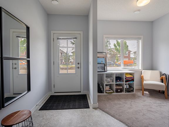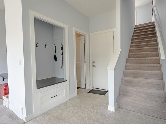 Welcome to this beautiful townhouse located in the desirable community of Griesbach! This stylish home offers an open-concept main floor with modern vinyl plank flooring throughout. The bright white kitchen features ample cabinetry, a central island, stainless steel appliances, and access to a private deck — perfect for morning coffee or evening BBQs. The dining area is highlighted by a stunning accent wall, and the spacious living room is filled with natural light from a large front window. Upstairs, you’ll find a generous primary suite complete with double closets. Another great sized bedroom and a full 4-piece bathroom complete the upper level. The lower level offers a versatile flex room — ideal for an office, gym, or guest space and 2pc bathroom — and direct access to the oversized attached garage. This home is conveniently located near green spaces, parks, walking trails, and shopping, making it perfect for families or professionals alike.