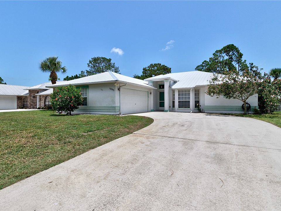 Charming 3-bedroom, 2-bath, 2-car garage home in the heart of Sebastian! Features a 2024 metal roof, outlet for a generator, spacious screened patio, and oversized lot with mature trees and storage shed. Light-filled interior offers vaulted ceilings, stainless steel appliances, and an open living/dining space. Split bedrooms, master bedroom with walk-in closet, master bath with large tub, and separate shower. Just minutes from shopping, restaurants, boat ramps, river, and beaches. Room to add a pool—don’t miss this one!