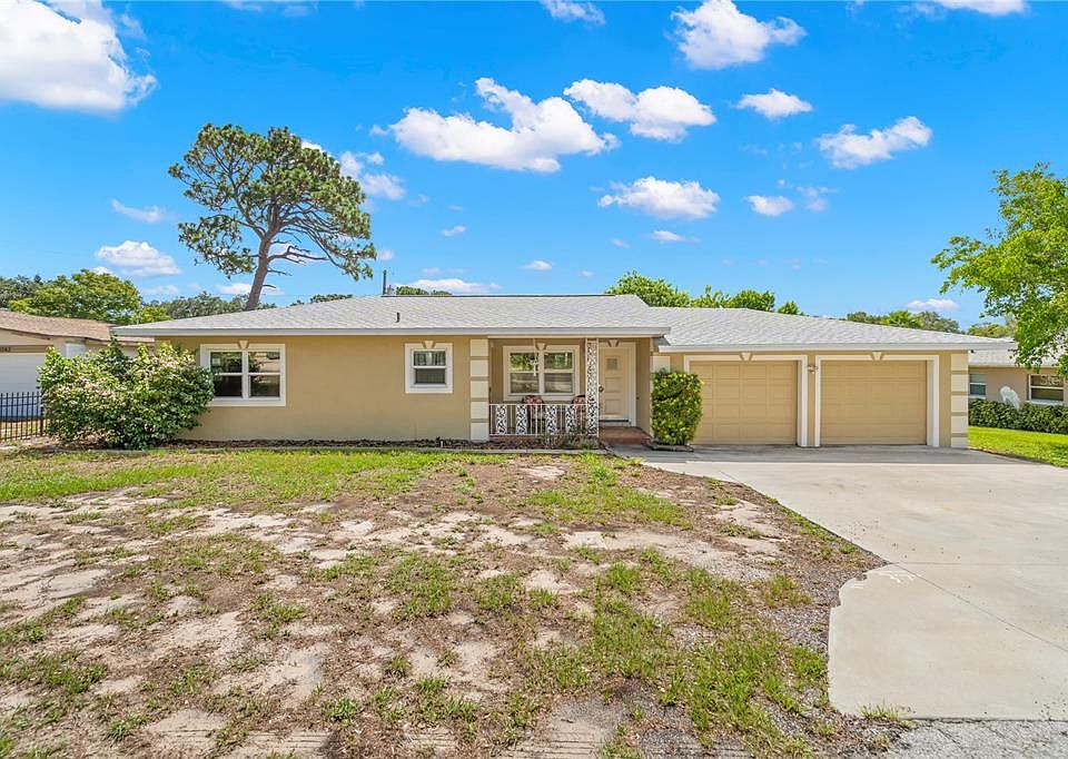 One or more photo(s) has been virtually staged. NO HOA, NON-FLOOD ZONE in PRIME LOCATION just 5 MINUTES FROM THE BEACH!! This 3-bedroom home is ready for a buyer to make it shine and would make a great Airbnb! With a NEW ROOF INSTALLED IN 2020, NEW WINDOWS IN 2019 and NEW STUCCO & EXTERIOR PAINT IN 2019, these major updates have already been completed for you. This home features a spacious TWO-CAR GARAGE with ample storage space and washer/dryer connections. The OVERSIZED DRIVEWAY can accommodate multiple cars, RV or BOAT, and the inviting COVERED FRONT PORCH adds charm and curb appeal. Inside, you'll find a roomy living room with COVED CEILINGS creating an elegant look and an ADDITIONAL FAMILY/FLORIDA ROOM with ceiling fan, ideal for extra living space, a home office, a larger dining room, art studio - the possibilities are endless! The ADORABLE VINTAGE RETRO kitchen is equipped with a built-in oven, cooktop stove, dishwasher, and a side-by-side refrigerator with water & ice dispenser. The kitchen also comes equipped with a ceiling fan, coffee bar hutch and a single French door that opens to the front porch. Conveniently located next to the kitchen is the dining room which features COVED CEILINGS and beautiful engineered wood flooring. The primary bedroom is generously sized and includes an updated En Suite bathroom with wainscoting on walls. A separate room with a tub/shower combo is accessible from both the primary bathroom and the guest room hallway, ensuring convenience for all three bedrooms, and features built-in linen storage. An additional large half guest bath is located in the hall. Keep the groovy look or update to a more modern style. All 3 bedrooms include CEILING FANS with lights. Carpeting has been removed from the living room, family room and bedrooms so it's ready for you to install flooring of your own style or keep the terrazzo underneath. HUGE SCREENED PATIO, with access to your spacious backyard, is perfect for gathering with family and friends for an outdoor barbecue. Situated just 5 MINUTES FROM THE BEACH and directly across from the popular Harbor Bluffs neighborhood, this home is close to restaurants, shopping, and parks. It's also JUST DOWN THE ROAD FROM JOHN S. TAYLOR PARK, offering BEAUTIFUL TRAILS, a FISHING LAKE, PICNIC AREAS, a PLAYGROUND, DOG PARK and a DISC GOLF COURSE. Move right in with a few updates or bring your vision and creativity to transform this home into your dream residence or a profitable investment property! PROPERTY DID NOT HAVE ANY FLOODING FROM RECENT HURRICANES!