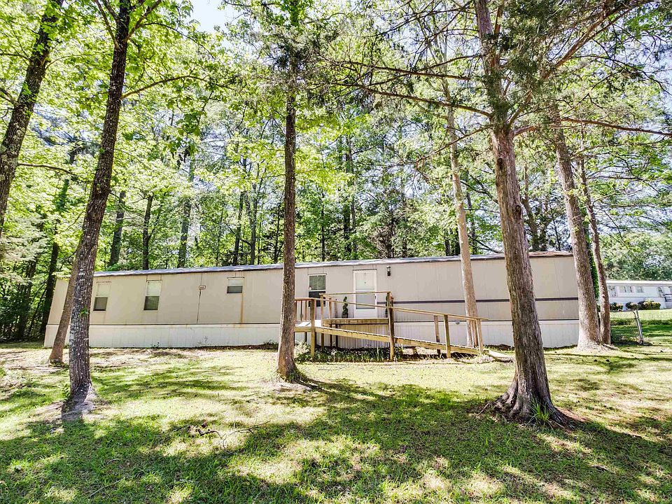 king for a weekend get-away or a permanent home close to the lake but with no fees or covenants? Look no further. This 3 bed/2 bath mobile home is nestled underneath trees to keep the place shady, and the back yard is fenced in. All furnishings, appliances, etc stay with the home with the exception of the TV and antique radio in the family room. Both decks on the home are wheelchair friendly. This home is literally a 2 minute drive to Soap Creek Marina and boat ramp. Schedule your showing today!