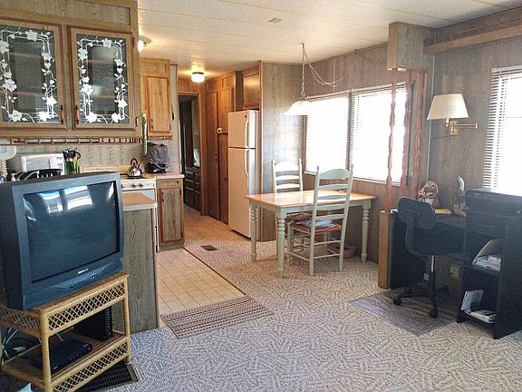 1 bedroom 1 bath Mallard with metal roof, storage shed and 24 ft. Florida room for additional seasonal living space. Separate laundry room includes Washer and Dryer. Central air and roof recently serviced. Non age restricted community features pool, spa, social activities, and relatively low land lease which includes lawn, water, sewer, trash for full or part time living. Quaint town close proximity to the chain of lakes. Vacant for spontaneous showings and quick move in upon park approval. LB1302